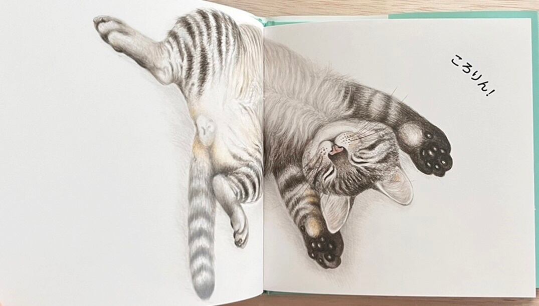 繊細な色鉛筆画は毛の一本一本まで描かれ思わず触りたくなる美しさです。