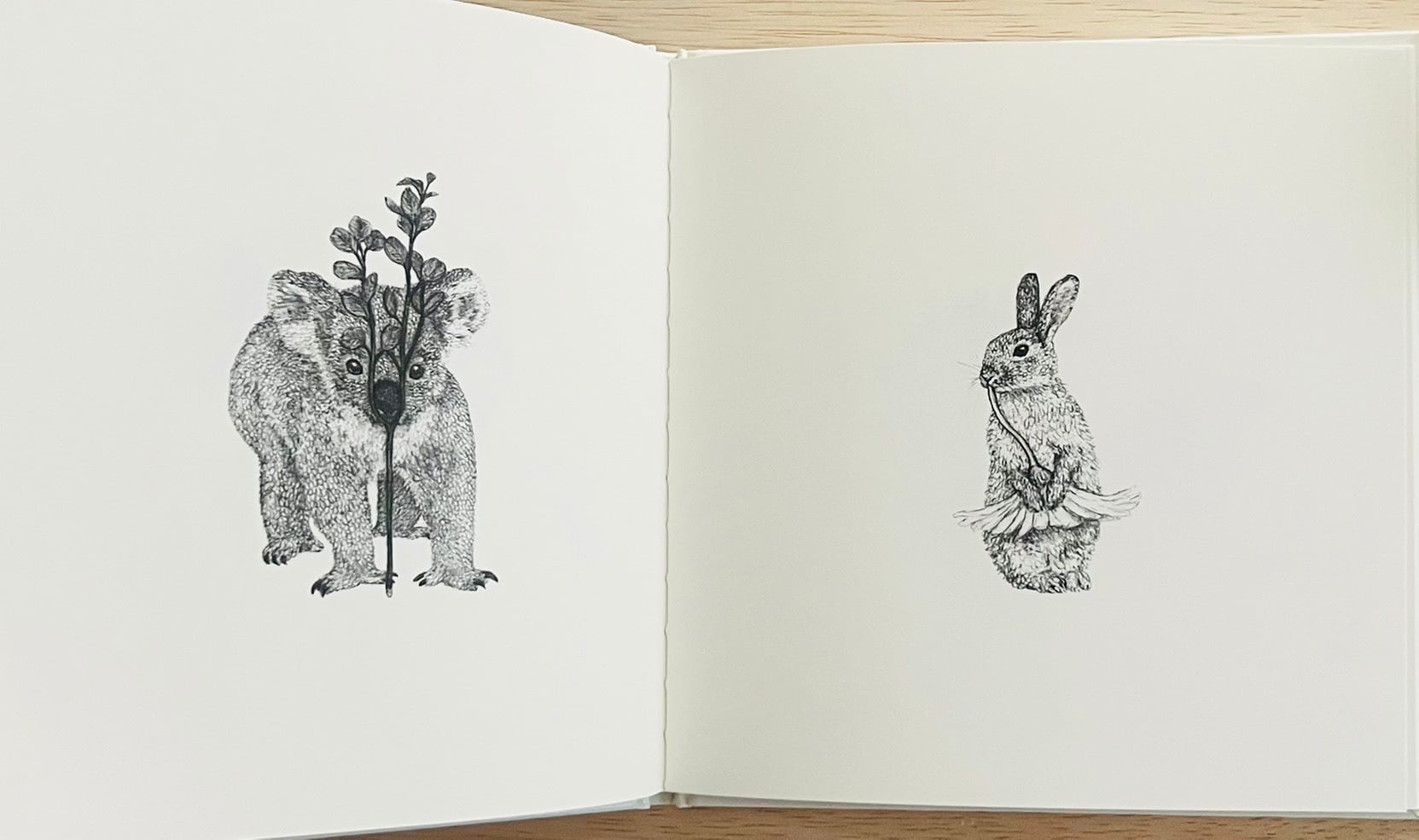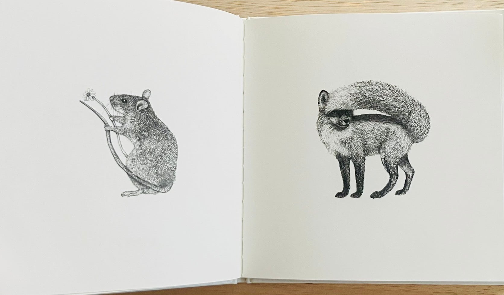 第45回講談社絵本新人賞を受賞した、秦直也さんの1冊目の絵本になります。人間の気配が介在しない動物たちの愉快な瞬間を、「いっぽうそのころ」という言葉だけでひとつなぎにしました。めくるたびに双眼鏡で地球上のあらゆる場所にいる動物たちを覗き見しているような気持ちに。シンプルながら想像の余地に溢れたモノクロの絵本です。