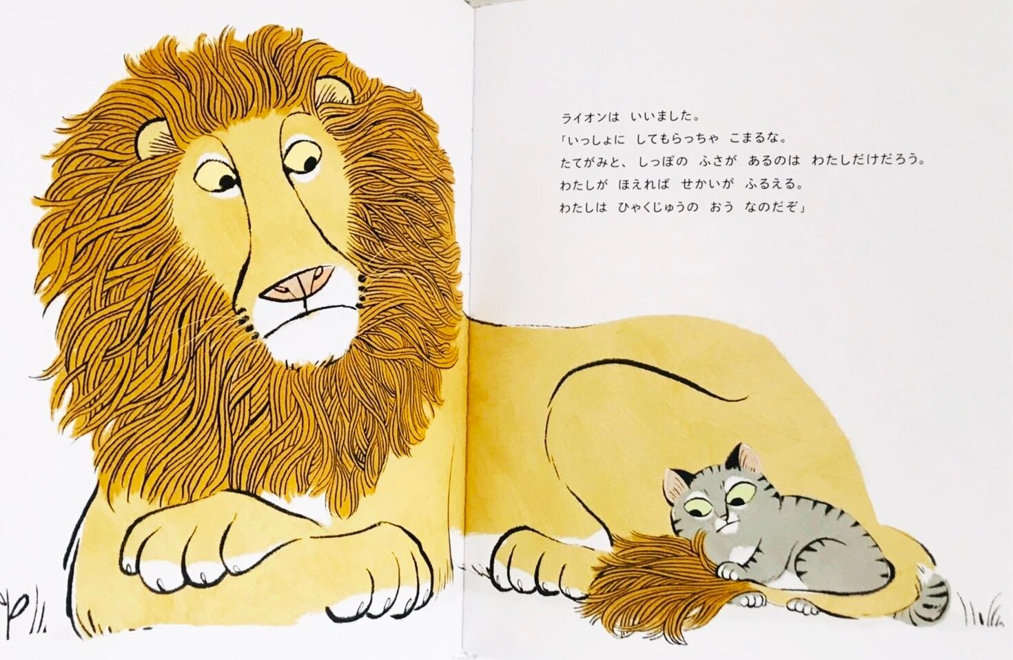 百獣の王ライオンを筆頭に、チーター、ピューマ、クロヒョウ、トラの大型ネコ科動物5人組が集うところに遭遇した、子ねこのサイモン。